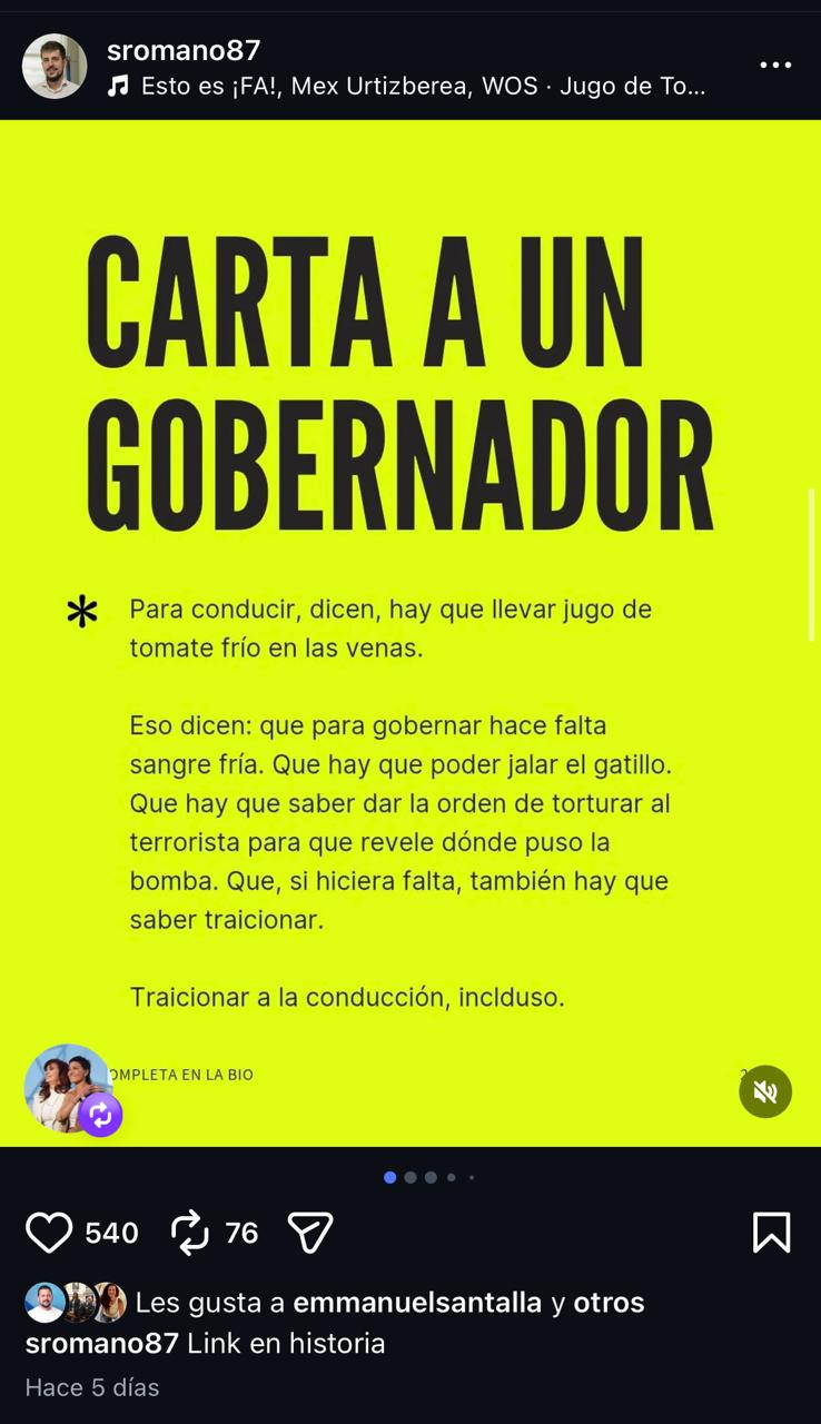 Si en algo coincido con vos es en que la conducción no se hereda. La portación de apellido no garantiza nada. Todo proceso de liderazgo implica trayectoria, formación y, sobre todo, experiencia en la lucha. Esa experiencia puede ser política, gremial, social o incluso personal; pero deja marcas. Resulta difícil conducir a un pueblo atravesado por dificultades cuando no se ha transitado ningún proceso de ese tipo.
