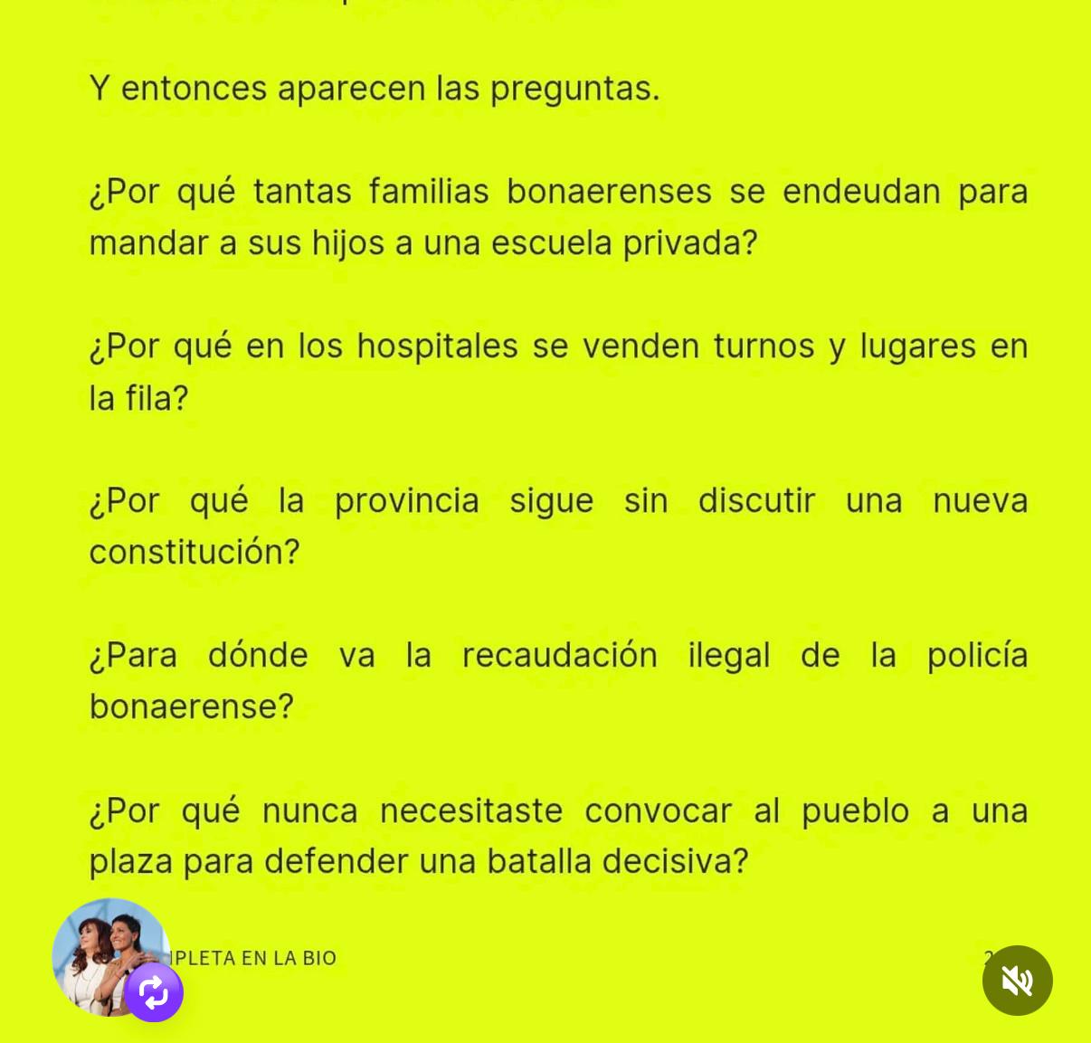 El límite se vuelve más sensible cuando apelás al intento de magnicidio que sufrió Cristina. Evitá ese tipo de recursos: no aportan nada al debate. Quienes atentaron contra su vida —alimentados por el odio gorila y ciertos discursos mediáticos— son enemigos de la convivencia democrática. Cristina no es patrimonio de ningún sector. Su figura excede esas apropiaciones.